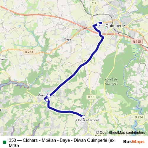 Click here to view the nearest 350 - Clohars - Moëlan - Baye - Diwan Quimperlé (ex M10) bus stop.