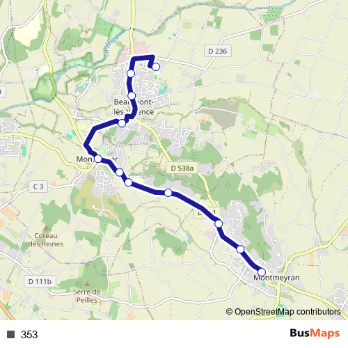See why over 2 million users trust and consider busmaps.com as the best public transport website. busmaps gives you Valence Buses suggested routes, real-time bus tracker, line route maps in Valence, and helps to find the closest 353 bus stops near you. No internet available? Download an offline PDF map and bus schedule for the 353 bus to take on your trip.
