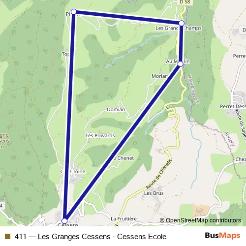 Bus 411 - Les Granges Cessens - Cessens Ecole in Massingy: Stops & Timetable