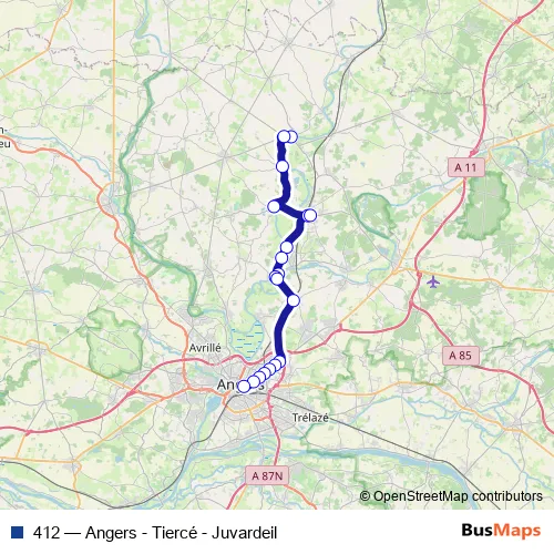 Bus 412 - Angers - Tiercé - Juvardeil in Angers: Stops & Timetable