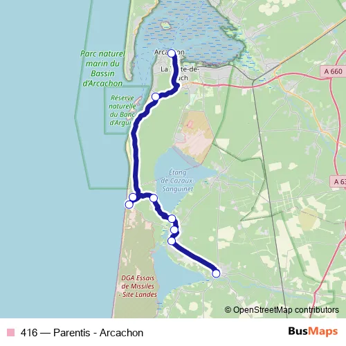 Click here to view the nearest 416 - Parentis - Arcachon bus stop.