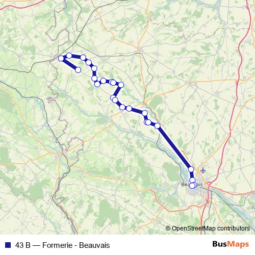 The first stop of the 43 B bus route is Centre and the last stop is Gare Routière. 43 B (Formerie - Beauvais) is operational during tous les jours.
