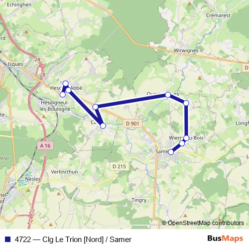 Click here to view the nearest 4722 - Clg Le Trion [Nord] / Samer bus stop.