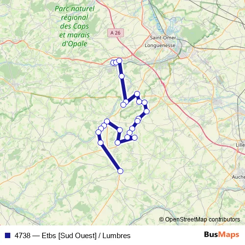 Bus 4738 - Etbs Sud Ouest / Lumbres in Nielles-les-Blequin: Stops & Timetable