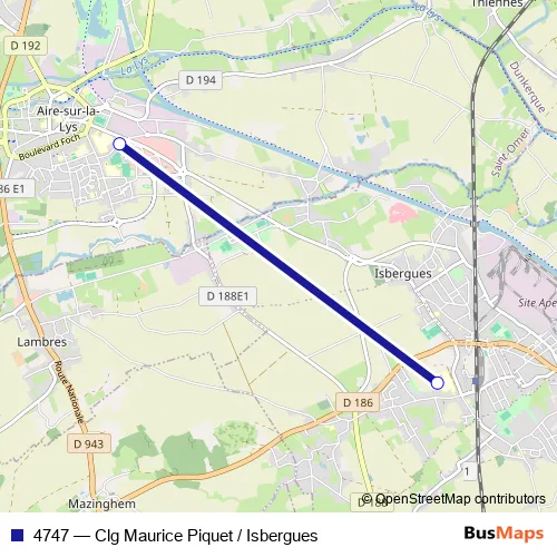 Click here to view the nearest 4747 - Clg Maurice Piquet / Isbergues bus stop.