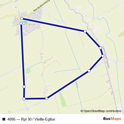 The first stop of the 4895 bus route is Vieille-Eglise - Rue de Bourbourg - F Abri and the last stop is Vieille-Eglise - Ecole - Eglise. 4895 (Rpi 30 / Vieille-Eglise) is operational during tous les jours.