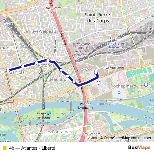 See why over 2 million users trust and consider busmaps.com as the best public transport website. busmaps gives you Tours Buses suggested routes, real-time bus tracker, line route maps in Tours, and helps to find the closest 4b bus stops near you. No internet available? Download an offline PDF map and bus schedule for the 4b bus to take on your trip.