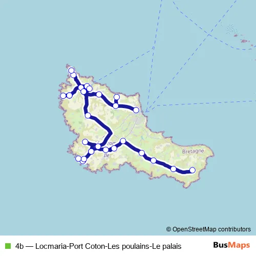 Gare Routière. 4b (Locmaria-Port Coton-Les poulains-Le palais) is operational during tous les jours.