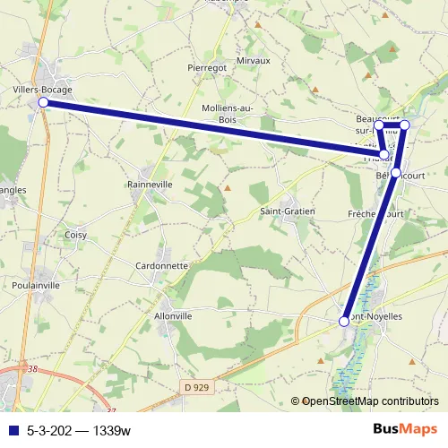 The first stop of the 5-3-202 bus route is Villers-Bocage - Collège les Coudriers and the last stop is Querrieu - Centre Arrêt. 5-3-202 (1339w) is operational during tous les jours.