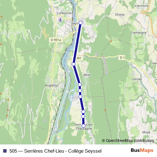 Click here to view the nearest 505 - Serrières Chef-Lieu - Collège Seyssel bus stop.