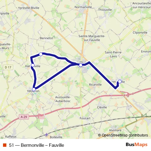 Click here to view the nearest 51 - Bermonville – Fauville bus stop.