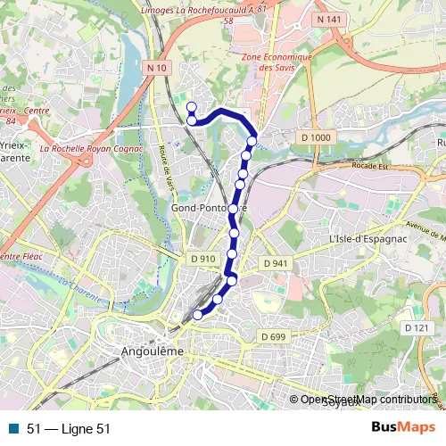 See why over 2 million users trust and consider busmaps.com as the best public transport website. busmaps gives you Angouleme Buses suggested routes, real-time bus tracker, line route maps in Angouleme, and helps to find the closest 51 bus stops near you. No internet available? Download an offline PDF map and bus schedule for the 51 bus to take on your trip.