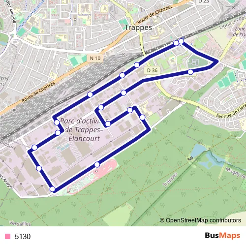The first stop of the 5130 bus route is Trappes Gare and the last stop is Trappes Gare. 5130 is operational during en semaine.