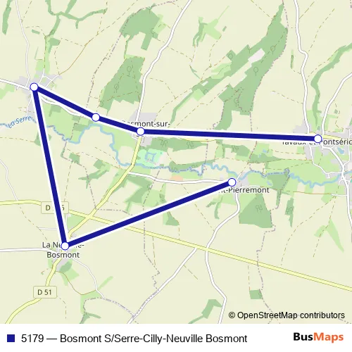 Click here to view the nearest 5179 - Bosmont S/Serre-Cilly-Neuville Bosmont bus stop.