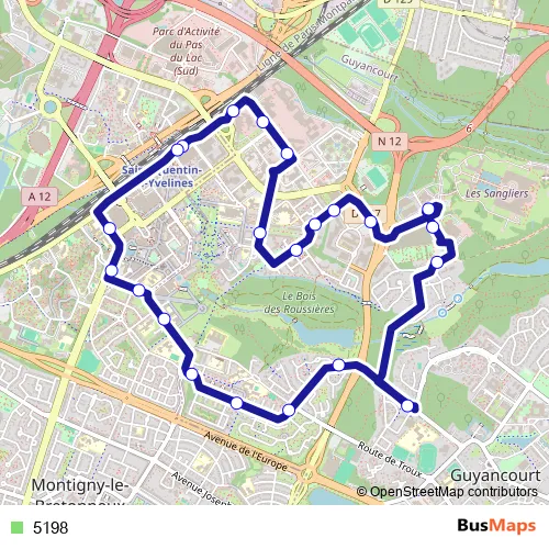 The first stop of the 5198 bus route is Saint-Quentin - Gare and the last stop is Saint-Quentin - Gare Routière des Prés - dépose. 5198 is operational during en semaine.