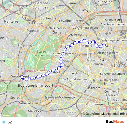 See why over 2 million users trust and consider busmaps.com as the best public transport website. busmaps gives you Paris Buses suggested routes, real-time bus tracker, line route maps in Paris, and helps to find the closest 52 bus stops near you. No internet available? Download an offline PDF map and bus schedule for the 52 bus to take on your trip.