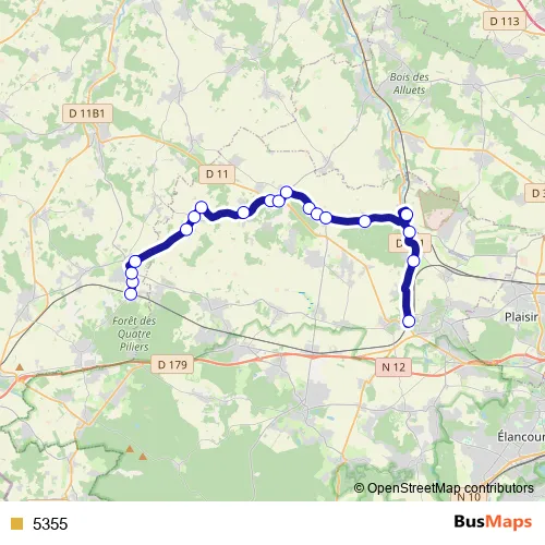 The first stop of the 5355 bus route is Gare d'Orgerus Béhoust and the last stop is Place de la Gare / Villiers - Neauphle - Pontchartrain. 5355 is operational during en semaine.