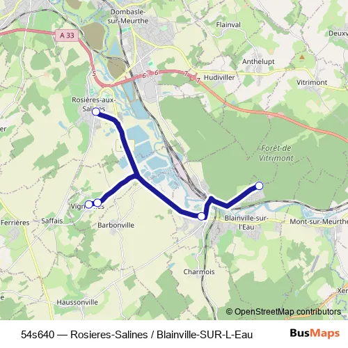 Click here to view the nearest 54s640 - Rosieres-Salines / Blainville-SUR-L-Eau bus stop.