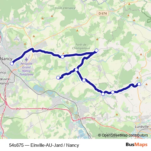 Click here to view the nearest 54s675 - Einville-AU-Jard / Nancy bus stop.