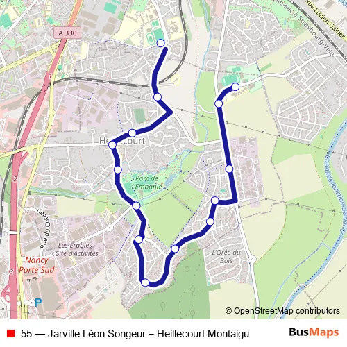 The first stop of the 55 bus route is Heillecourt Montaigu and the last stop is Léon Songeur. 55 (Jarville Léon Songeur – Heillecourt Montaigu) is operational during en semaine.