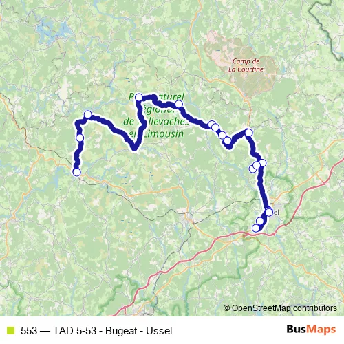 Click here to view the nearest 553 - TAD 5-53 - Bugeat - Ussel bus stop.