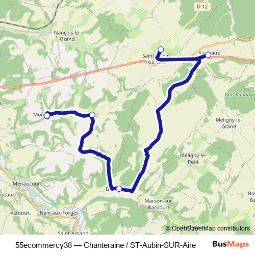 The first stop of the 55ecommercy38 bus route is Chanteraine - Oey and the last stop is Saint-Aubin-SUR-Aire - Saint Aubin sur Aire - Emp. 55ecommercy38 (Chanteraine / ST-Aubin-SUR-Aire) is operational during tous les jours.