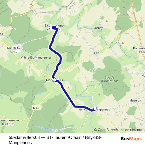 Click here to view the nearest 55edamvillers08 - ST-Laurent-Othain / Billy-SS-Mangiennes bus stop.