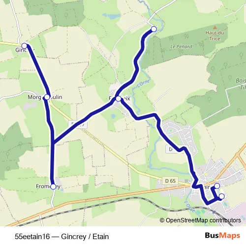Click here to view the nearest 55eetain16 - Gincrey / Etain bus stop.