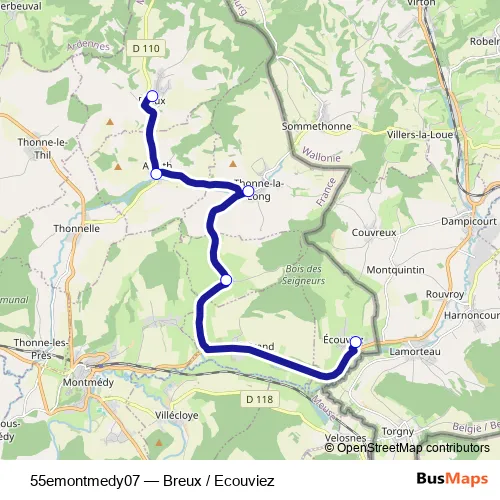 Bus 55emontmedy07 - Breux / Ecouviez Schedule in Virton