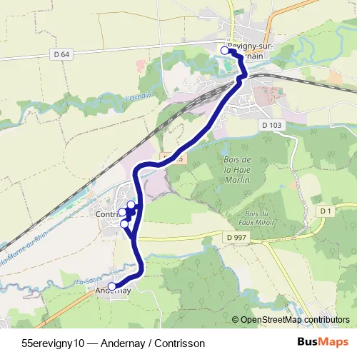Click here to view the nearest 55erevigny10 - Andernay / Contrisson bus stop.