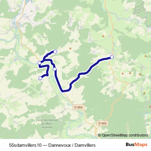 The first stop of the 55sdamvillers10 bus route is Damvillers - College and the last stop is Dannevoux - Arret a l'église. 55sdamvillers10 (Dannevoux / Damvillers) is operational during en semaine.