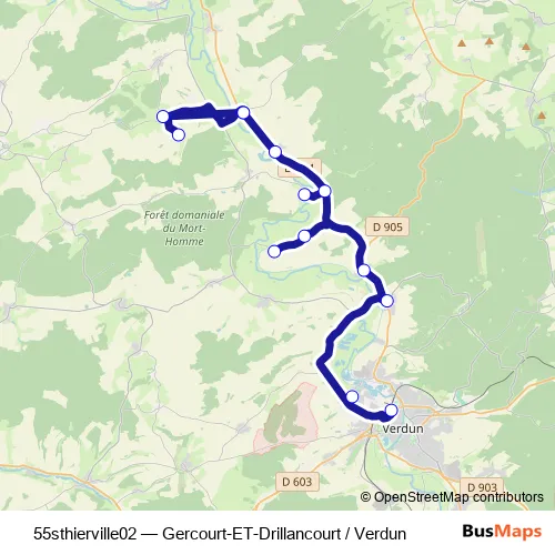 Click here to view the nearest 55sthierville02 - Gercourt-ET-Drillancourt / Verdun bus stop.