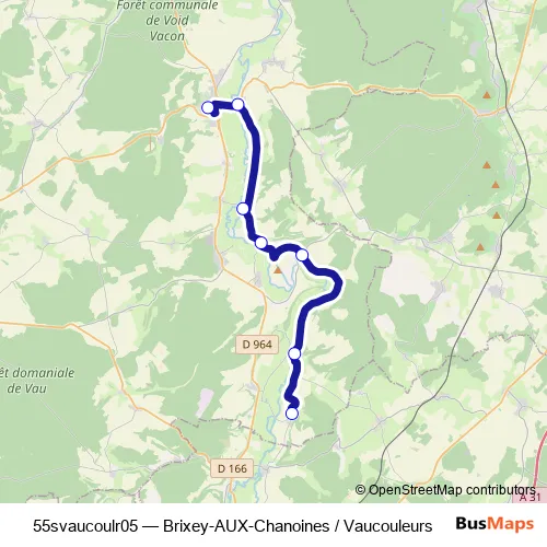 Services on the 55svaucoulr05 - Brixey-AUX-Chanoines / Vaucouleurs bus start at 12:05 on lundi, mardi, mercredi, jeudi, vendredi.