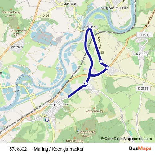 Aller: Malling - Petite Hettange / Croisement ➞ Koenigsmacker - Groupe Scolaire La Magnascole