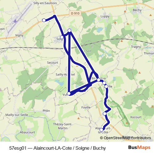Click here to view the nearest 57esg01 - Alaincourt-LA-Cote / Solgne / Buchy bus stop.