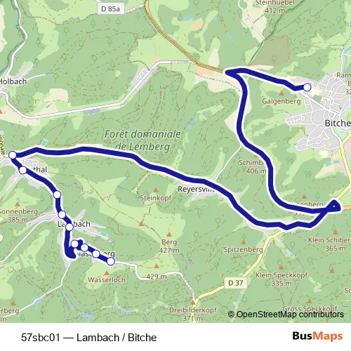 The first stop of the 57sbc01 bus route is Bitche - Etablissements Scolaires and the last stop is Lambach - Glasenberg / Reservoir. 57sbc01 (Lambach / Bitche) is operational during en semaine.