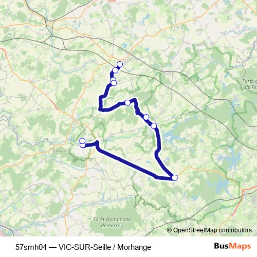 The first stop of the 57smh04 bus route is Morhange - College L'Arboretum and the last stop is VIC-SUR-Seille - Ecole. 57smh04 (VIC-SUR-Seille / Morhange) is operational during en semaine.