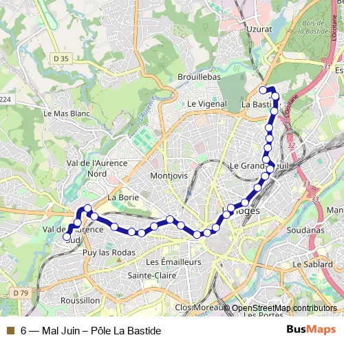 See why over 2 million users trust and consider busmaps.com as the best public transport website. busmaps gives you Limoges Buses suggested routes, real-time bus tracker, line route maps in Limoges, and helps to find the closest 6 bus stops near you. No internet available? Download an offline PDF map and bus schedule for the 6 bus to take on your trip.