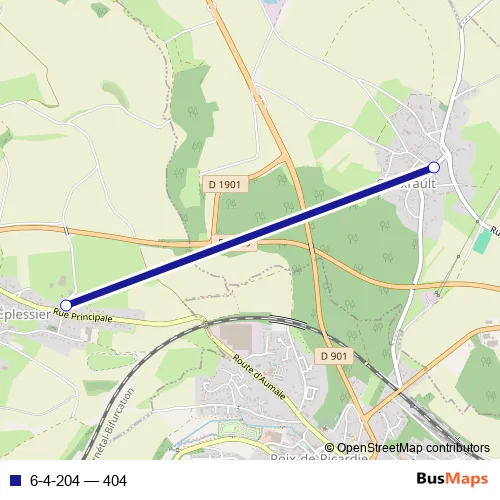 The first stop of the 6-4-204 bus route is Croixrault - Ecole primaire and the last stop is Eplessier - Ecole élémentaire. 6-4-204 (404) is operational during tous les jours.