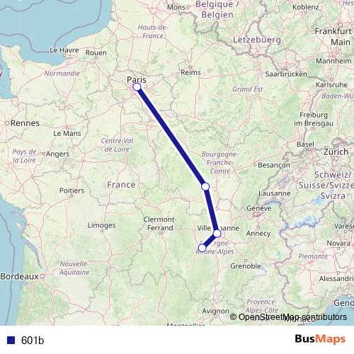 The first stop of the 601b rail route is Paris Gare de Lyon and the last stop is Saint-Étienne Châteaucreux. 601b is operational during tous les jours.