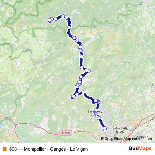 Click here to view the nearest 608 - Montpellier - Ganges - Le Vigan bus stop.