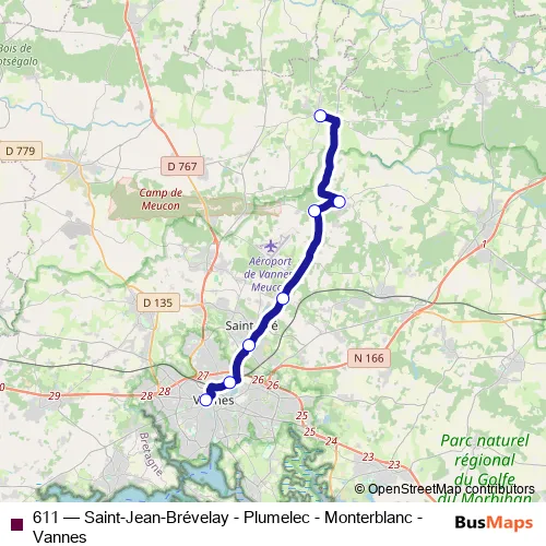 Click here to view the nearest 611 - Saint-Jean-Brévelay - Plumelec - Monterblanc - Vannes bus stop.