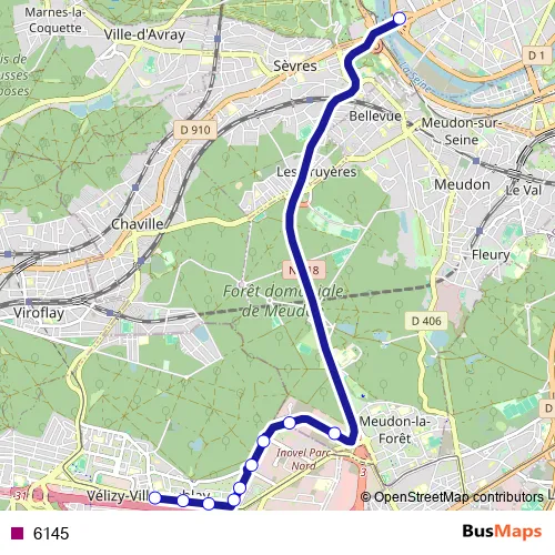 The first stop of the 6145 bus route is Pont de Sèvres and the last stop is Mairie de Vélizy. 6145 is operational during en semaine.