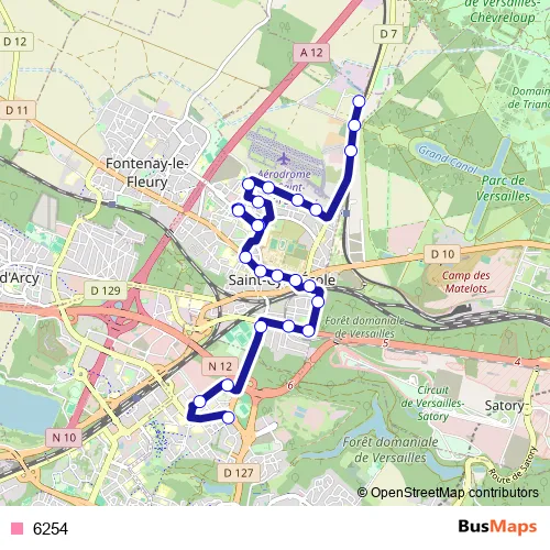 The first stop of the 6254 bus route is Ferme de Gally and the last stop is Parc Maurice Leluc. 6254 is operational during tous les jours.