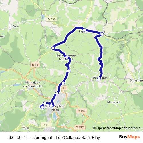Click here to view the nearest 63-Ls011 - Durmignat - Lep/Collèges Saint Eloy bus stop.