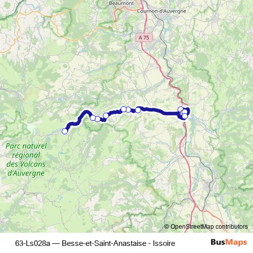Services on the 63-Ls028a - Besse-et-Saint-Anastaise - Issoire bus start at 17:10 on lundi, mardi, mercredi, jeudi, vendredi.