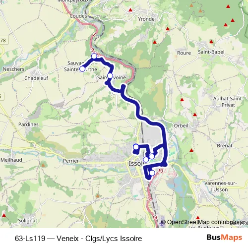 Click here to view the nearest 63-Ls119 - Veneix - Clgs/Lycs Issoire bus stop.