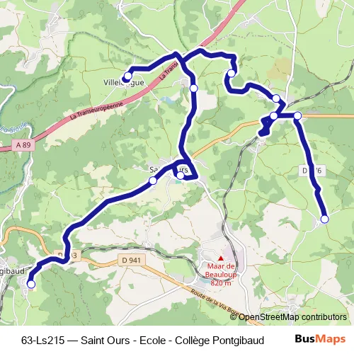 The first stop of the 63-Ls215 bus route is Collège Pontgibaud and the last stop is Beauregard. 63-Ls215 (Saint Ours - Ecole - Collège Pontgibaud) is operational during en semaine.