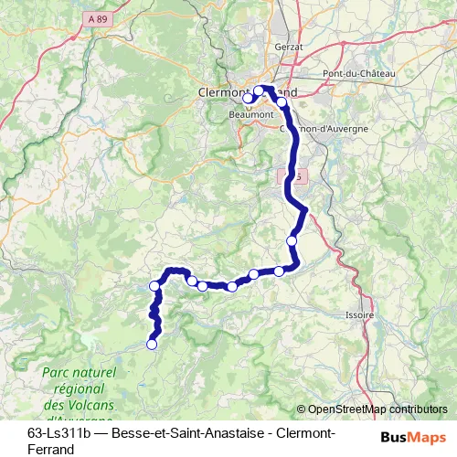 The first stop of the 63-Ls311b bus route is Collège Besse and the last stop is Gare Routière. 63-Ls311b (Besse-et-Saint-Anastaise - Clermont-Ferrand) is operational during tous les jours.