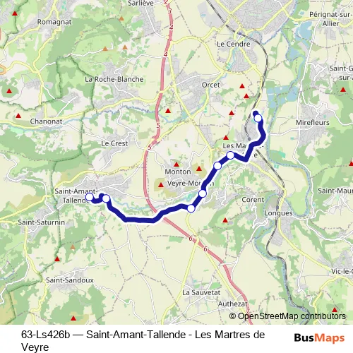Bus 63-Ls426b - Saint-Amant-Tallende - Les Martres de Veyre in Veyre-Monton: Stops & Timetable